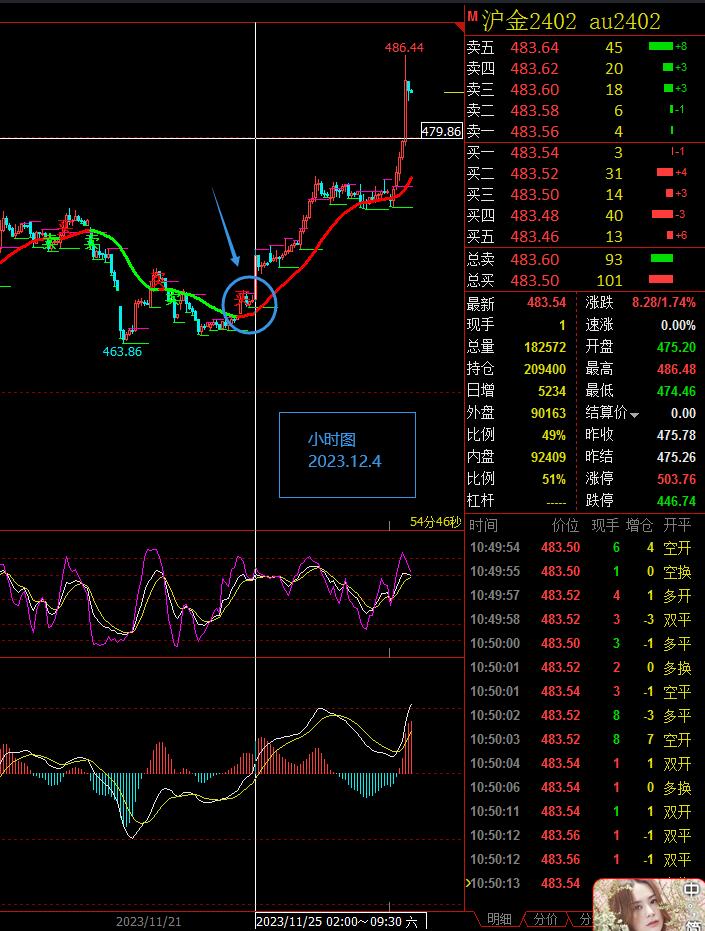 沪金:目前我们的指标显示趋势波段给出的买入信号,关注区间在486-479之间,大区间关注在489-477一线.