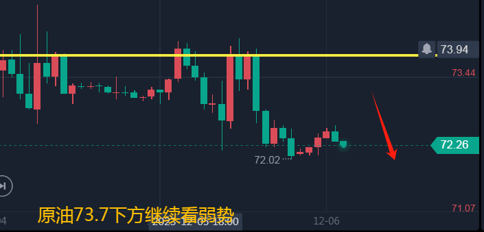 原油昨天整体走势依然很弱,在冲高74之后行情受阻回落,我们果断给出73.7的空单完美收割获利,并且行情多次冲高74,机会多多,随后迎来大跌获利。日线上油价还是弱势格局,从周线上应该会有一个加速探底的动作后走反弹,所以近期还是先看空再说,等待一个加速赶底后我们再择机看涨。做空点位上72.8和73.3分批空,防守73.8,看71.5-70.5!