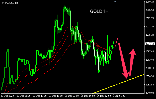 黄金短线(1H)走势自亚洲开盘后呈回暖上行节奏,金价向上穿越均线系统,多头动能占优势。关注2075对金价回调的阻力作用,预计日内黄金仍存在一波下行空间,测试黄色上行趋势线后,再重新起稳回升。近多空胶着后,最终黄金仍维持向上,测试前高位置概率较大。