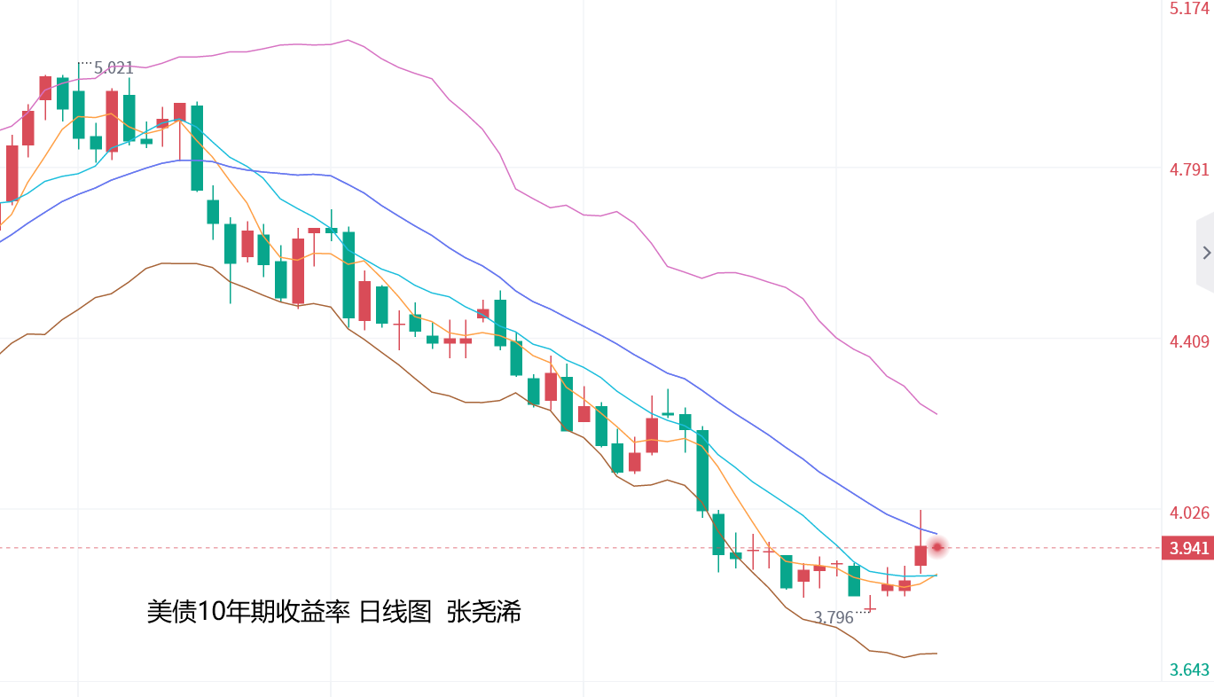 与此同时还有2024年FOMC票委、里奇蒙德联储主席巴尔金就经济前景发表讲话。及次日03:00美联储公布货币政策会议纪要。鉴于之前讲话和纪要都显示了偏鸽派观点,提振了金价走强,如晚间保持此观点不变未有加强,或有减弱,将会令金价震荡走盘或延续回落,反之则维持在10日均线上方持稳盘整。
