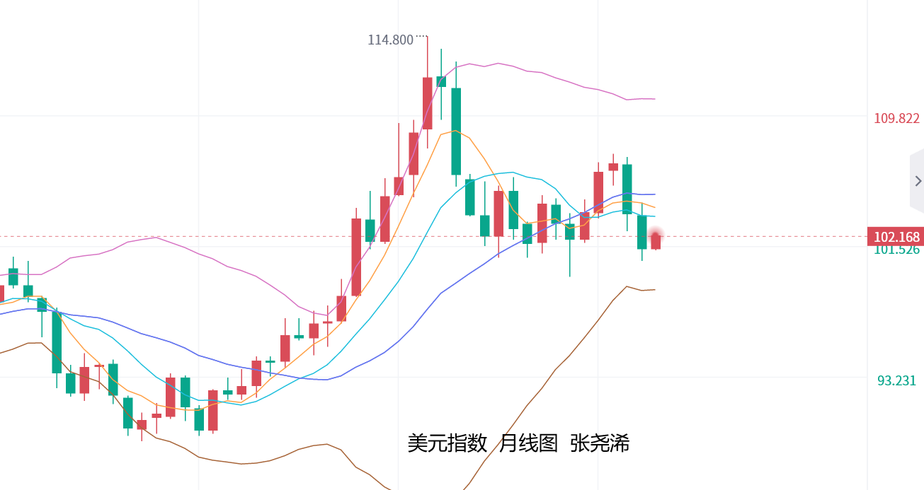 但根据《玩赚黄金投资交易》作者张尧浠言论;从更长远来看,由于地缘政治等因素的影响,潜在通胀目前明显处于下行轨道,再随着美国经济放缓,数据趋弱,对美联储2024年将大幅放松政策的押注升温。加之其他央行可能会在更长时间内维持高利率,致使美元吸引力下降,并在2024年持续走软。