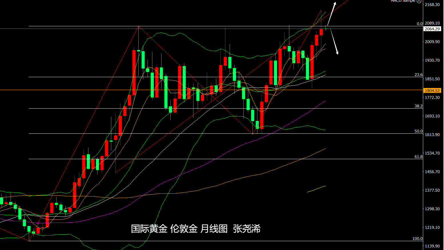 整体上,美元指数及美债10年期收益率日图及周图都存在着触底回升的行情和空间,将会对金价产生利空压力,其美元指数月图未跌破近一年来的支撑,暂限制了金价反弹动能,需跌破支撑,打开进一步下行空间,才能助力金价再度攀升,另外,美债10年期收益率月图也未跌破中轨支撑,也需跌破支撑后,才能助力金价再度攀升,在这之前,金价将陷入盘整或回调的行情为主。