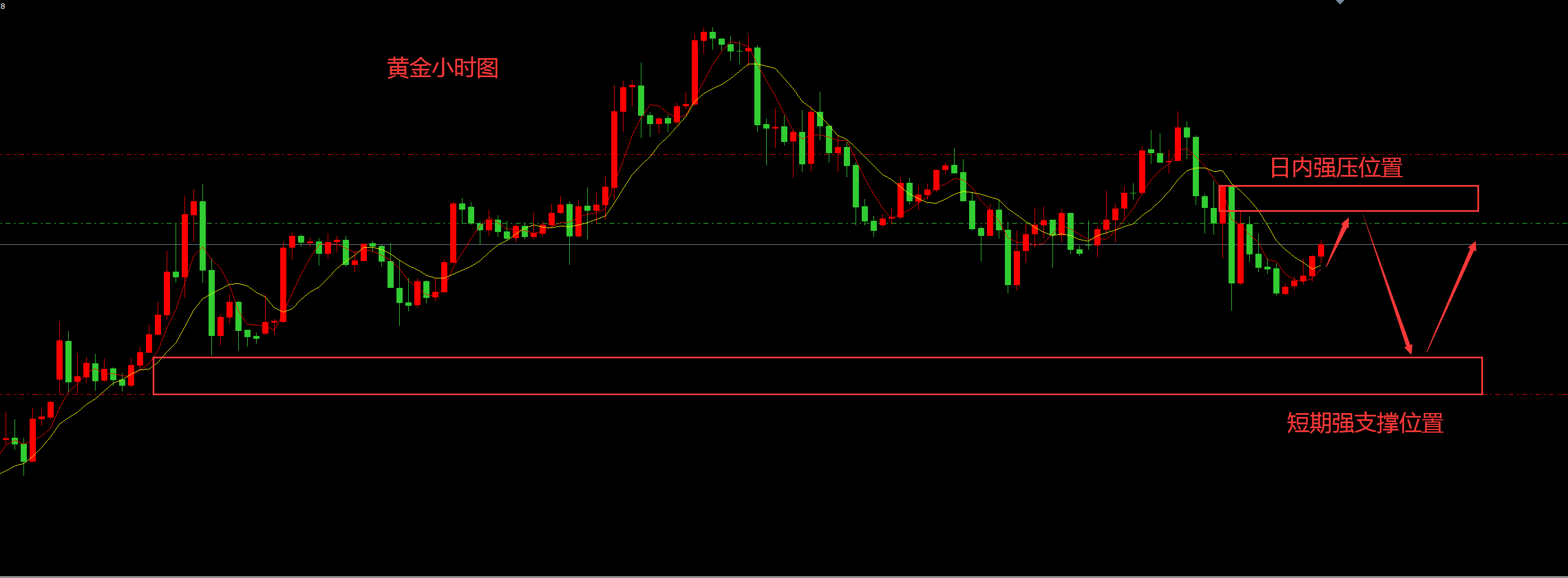 从行情运行节奏来看,昨天属于冲高回落,短期以日线级别延续回调的空头趋势未变。而按照盘面运行节奏来看,属于震荡下跌,今天还有低点。所以,今天仍主空,美元昨天大幅冲高,短期美元和美债反弹格局形成。而黄金经过震荡洗盘后回落破新低,形成空头延续的趋势。