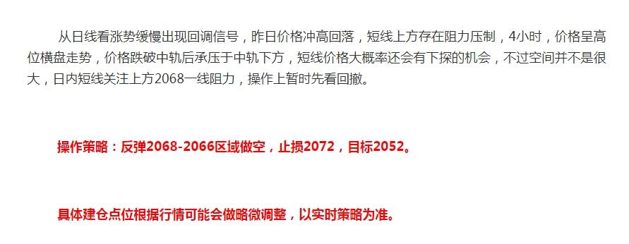 昨日,黄金基本按照预期反弹至2066附近后开启了一波大幅回撤的行情呢,完全按照昨日早盘的思路,2066附近空单完美收割一波,不过出人意料的是,价格的回撤力度比预期要大的多,空单离场的早了点,恭喜昨天跟上黄金反弹2066附近做空的朋友。