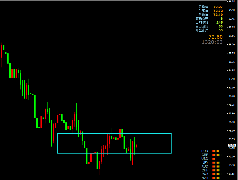 原油回踩初见71.6附近多,防守70.8,目标73上方,反抽在74附近做空,防守74.7,目标72附近
