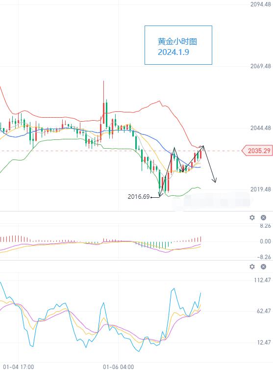 现货黄金(伦敦金):技术面上来看上周五日线收了一根带长下影线的小阴柱,布林带开口,KDJ指标死叉放量与拐角形成金叉,目前来看大趋势偏上,中线阶段性上行。4小时图中来看,布林带开口,KDJ指标形成金叉。小时图图中来看,布林带开始开口,KDJ指标金叉放量,昨日如期下行最低到达我们给出的第二支撑位2015上方,今日预计反弹修正后仍以下行为主,下方支撑关注2015/2000/1981,上方压力关注2036/2050/2064一线。