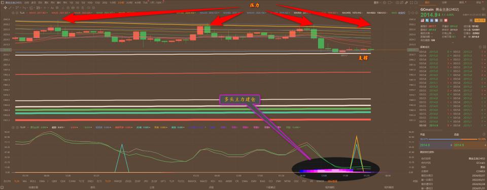 通过对黄金2小时图解析得知,黄金从早盘到目前为止小幅震荡调整运行,从主图中我们可以清楚的看到昨日晚间在下方均线支撑位得到了有效支撑,我们从下方的附图也可以清楚看到在下方均线支撑位出现多头主力建仓动作以及回调买入信号相对而言也是有一定的反弹空间短期上方我们继续重点关注连续多日受到压制的均线位置比较关键,短期在操作上我们继续高空低多思路,具体建议参考早盘策略
