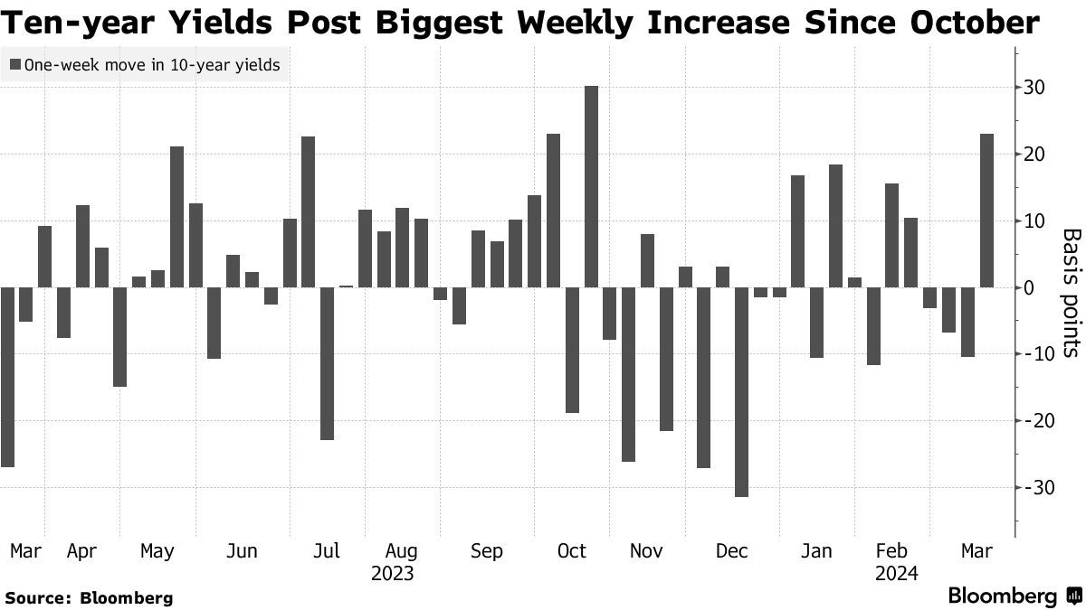 最近几天,美国国债收益率飙升,即将创下年内新高,因为数据继续显示通胀持续存在,这正导致交易员推迟美国货币宽松的时间表。