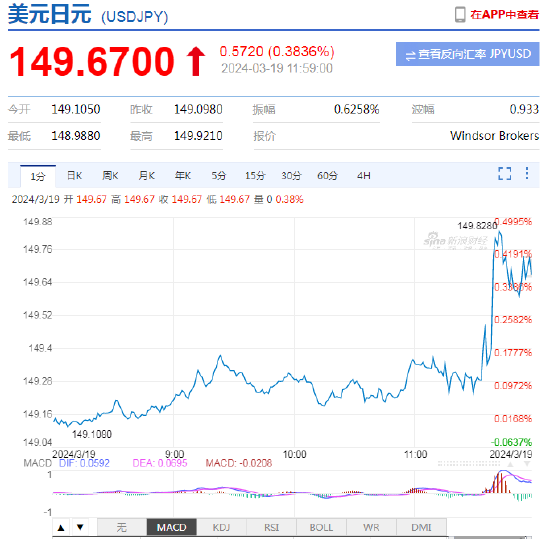 消息公布后,日元对美元短线走低。截至11时41分,日元对美元盘中最低触及149.922。