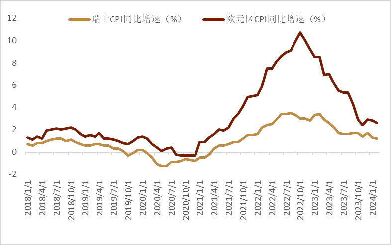 图表1:瑞士通胀压力明显低于欧元区