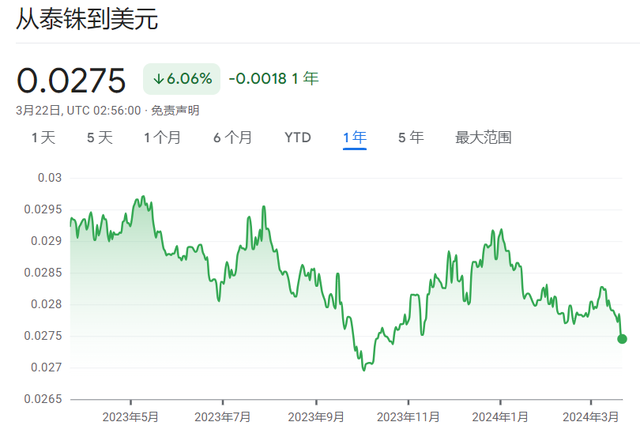 泰铢兑美元汇率一度跌1.2%,为5个月来最低水平。