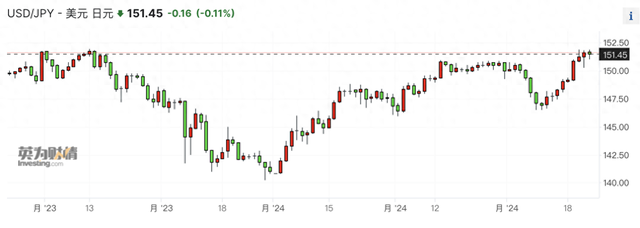 过去一周截至收盘,日元对美元大跌,美元/日元汇率逼近152的历史低位,收盘报151.4。与日本央行加息前的147相比,日元大幅走贬近3%。