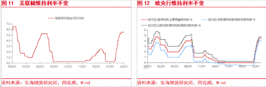 从货币政策层面来看,目前全球货币政策由紧缩逐步转向宽松。美联储预计今年降息3次,降息幅度75BP,但是经济软着陆预期增强、以及通胀回升或高于预期,导致美联储货币宽松预期减弱。欧央行由于经济增长动力不强,通胀回落,预计会率先降息,宽松力度强于美联储。日本央行由于日本经济复苏较好、通胀回升,进入加息通道,预计今年至少加息2次。中国由于经济复苏偏慢以及通胀较低,货币政策有进一步宽松的空间。