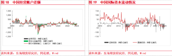 资本与金融账户方面,2010年以来中国金融与资本账户大致经历了四轮变化。第一轮是2010-2014年,国内经济整体复苏,直接投资增加,证券投资净流入,人民币汇率持续升值。第二轮是2015年-2016年,随着全球经济衰退以及国内发生股灾,直接投资和证券投资大幅净流出,叠加2015年“8.11”汇改,人民币汇率持续贬值。第三轮是2018年-2022年,随着国内经济复苏以及国内应对疫情相对较好,直接投资和证券投资大幅流入,人民币汇率持续走强。第四轮是2022年至今,由于疫情的影响、美联储的加息、国内房地产市场风险暴露,国内经济持续放缓、资本市场走弱,直接投资和证券投资大幅流出,人民币汇率贬值。