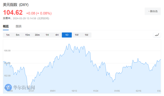 美元近期呈现小幅上扬态势,美元指数(DXY)自三月份的最低点已接近上涨2%,并且自年初以来累计上涨了3.3%。