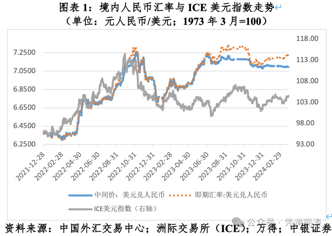 去年底今年初,市场普遍预期2024年美联储货币政策转向、美元指数走弱。但是,笔者曾多次强调,2024年人民币汇率能否企稳回升取决于国内经济持续修复的利好能否充分对冲海外货币紧缩、美元指数高企的利空。