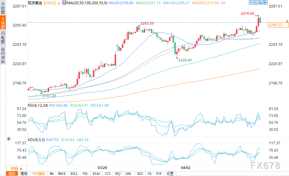 汇通财经APP讯——周二(4月2日)美市中,现货黄金短线涨幅扩大至超10美元,将纪录高位刷新至2274.21美元/盎司,日内涨近23美元。