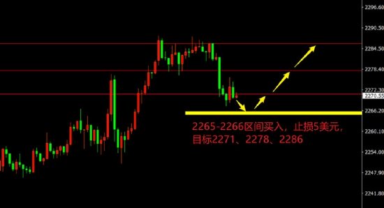 2265-2266区间买入,止损5美元,目标2271、2278、2286。