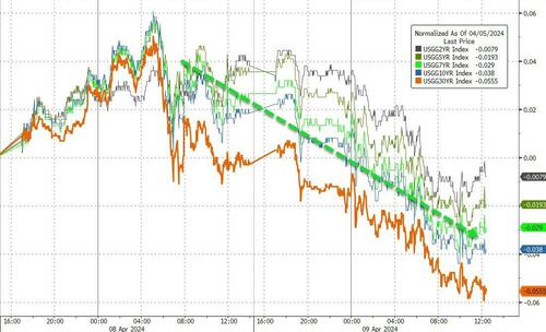 不过,富国银行分析师在4月5日的一份报告中写道,在市场如此看跌(债市)的情况下,较低的通胀数据有可能引发更剧烈的反应。他们写道,“在债券市场近期表现不佳的情况下,我们认为,如果核心CPI环比涨幅低于业内一致预期的0.3%,那么美债收益率的反应将比核心CPI高于预期时更为剧烈。”