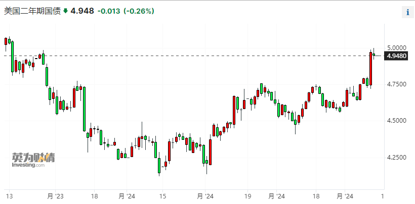 美债恐全面重返“5时代”?2年期美债收益率升穿5% 为5个月来首次