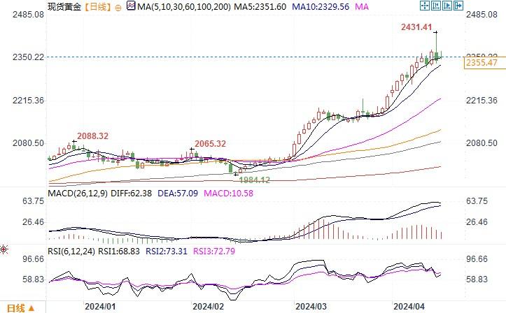 现货黄金日线图来源:易汇通北京时间4月15日10:05 现货黄金 报 2356.47 美元/盎司