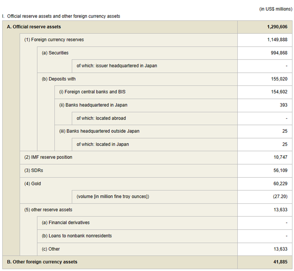 答:日本的具体外储信息如图表6所示,目前外汇储备总规模为1.29万亿美元,为全世界第二大的外储规模(第一为中国)。其中的0.995万亿美元为外国证券(我们认为其中大部分以美债为主)、0.155万亿美元为外币存款。