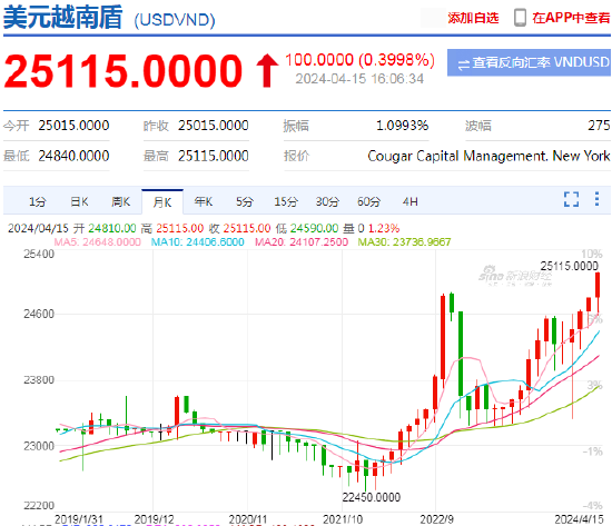 快讯:4月15日,越南盾兑美元汇率跌至历史新低。