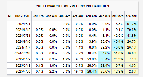 上周,美国核心消费者价格指数(CPI)涨幅超过预期,使美联储降息前景变得更加困难。CME美联储观察工具显示,市场对美联储降息的预期“从3次变成了2次,首降时间从6月变成了9月”。