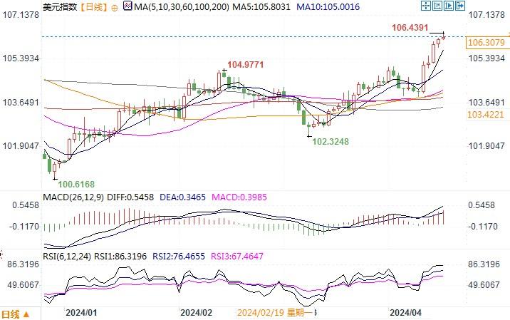 美元指数日线图来源:易汇通北京时间4月16日15:04 美元指数 报 106.3079