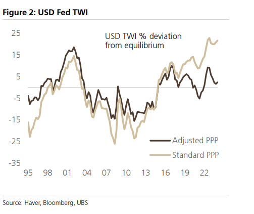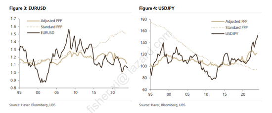 瑞银指出,美元的高估主要是由于美国相对于其他G10国家货币的强劲增长,以及大宗商品价格的上涨。然而,美元的高估程度并不像简单PPP模型所暗示的那么严重,并有助于解释美元为何最近一直持续强势.