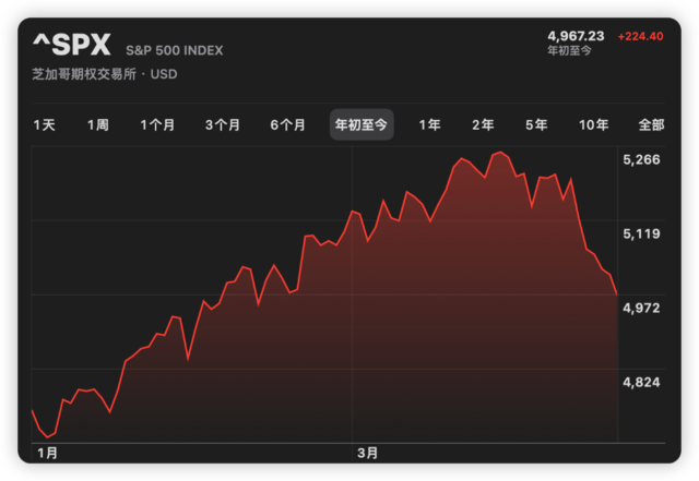 随着降息预期远去,美股也出现了大幅回调。截至上周五,标普500指数4月累计下跌5.5%,年内累计涨幅缩减至4.1%。