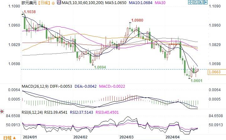 欧元兑美元日线图来源:易汇通北京时间4月22日13:46 欧元兑美元 报 1.0663/63