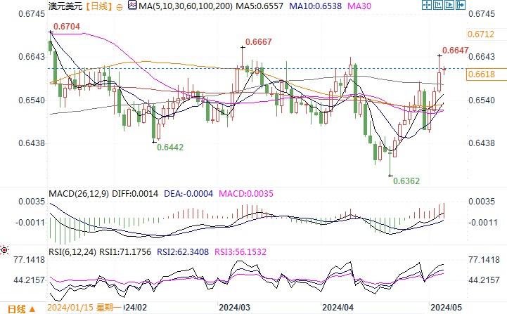澳元兑美元日线图来源:易汇通北京时间5月6日11:23 澳元兑美元 报 0.6614/15。