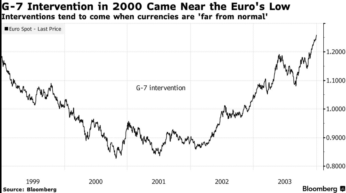 2000年G7干预后,欧元大幅反弹