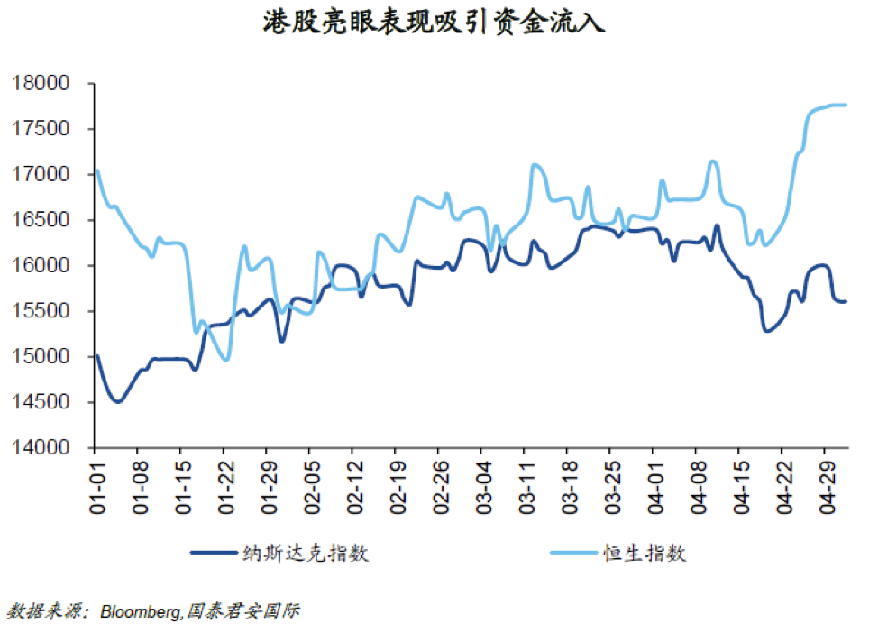 具体看来,国君国际认为,自今年4月以来,恒生指数的表现亮眼,远超美股。这在很大程度上表明市场在重新定价美国货币政策的同时,也开始对中国经济的表现重新定价。在过去几天,北京开始放松非核心区域的住房限购引发市场的关注,港股和A股的房地产板块也出现了久违的行情。