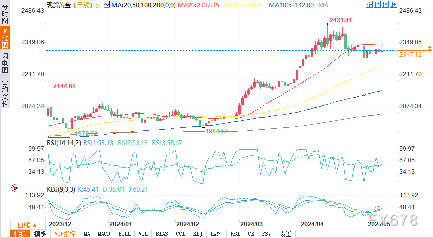 汇通财经APP讯——周三(5月8日)欧盘时段,现货黄金震荡走高。在日内一度触及2303美元的低位后黄金价格后反弹,目前交投于2317美元附近,涨幅约0.16%。