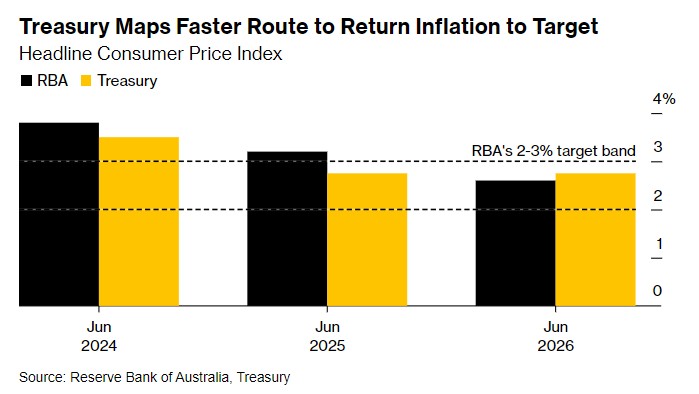 澳大利亚财政部预测,作为即将到来的预算的一部分,该国通胀可能在2024年底前恢复到央行的目标区间,这比政府或央行此前的预测都要早。