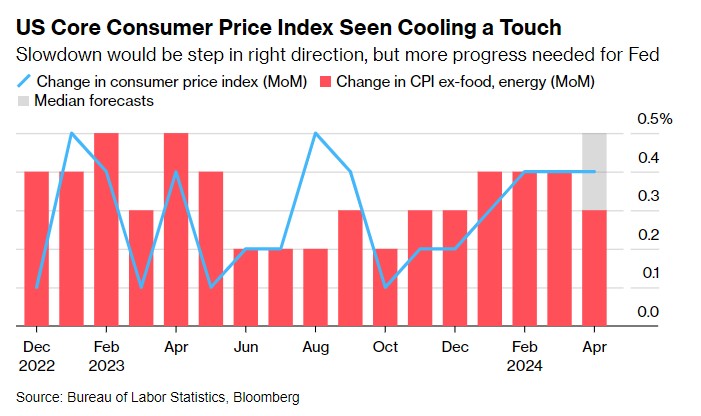 Bloomberg Economics经济学家Anna Wong、Stuart Paul、Eliza Winger和Estelle Ou表示:“4月份的核心CPI报告可能会带来令人鼓舞的迹象——我们预计这份数据将开始环比放缓——但我们认为,4月的核心PCE数据仍有可能保持强劲,这是美联储更大的担忧。”