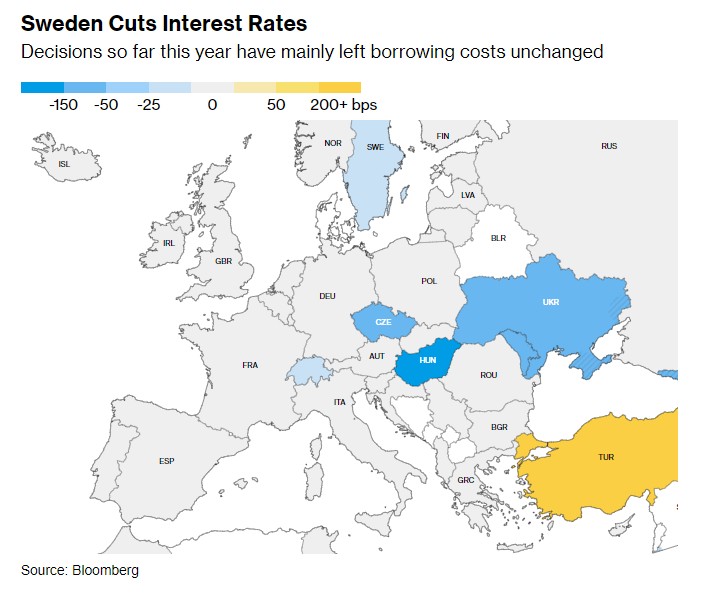 在瑞典,瑞典央行于5月8日宣布了降息,并承诺今年将进一步降息。该决定的会议纪要将于周三公布,同时公布最新的通胀数据。