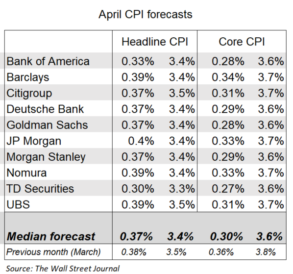 经济学家对今晚美国CPI数据的预期如何?