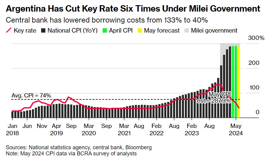 米莱治理下的阿根廷通胀持续降温 央行半年内大幅降息至40%