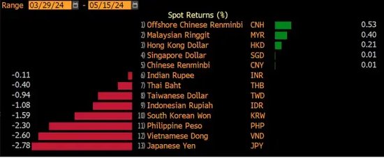 图6:2024年4月以来亚洲各国货币的贬值幅度