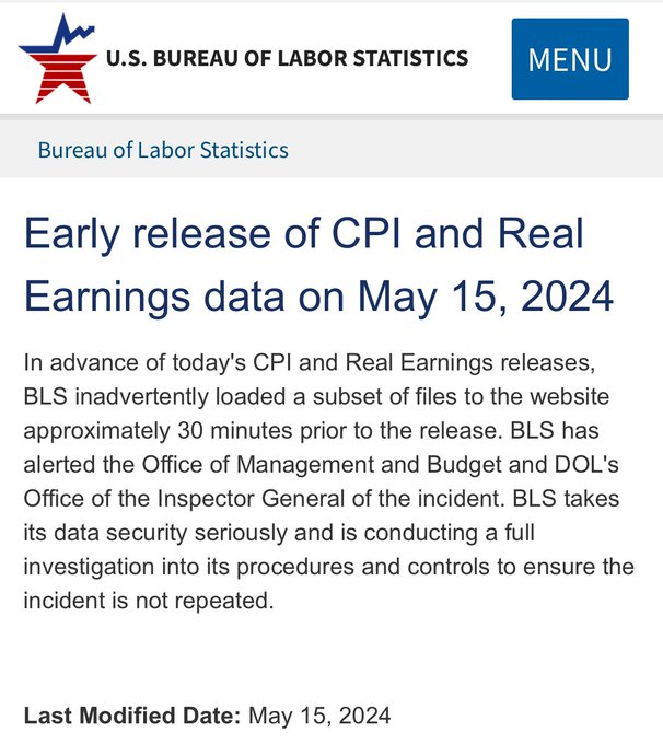 CPI提前30分钟就已泄露?美国劳工统计局昨夜又闹“超级乌龙”!