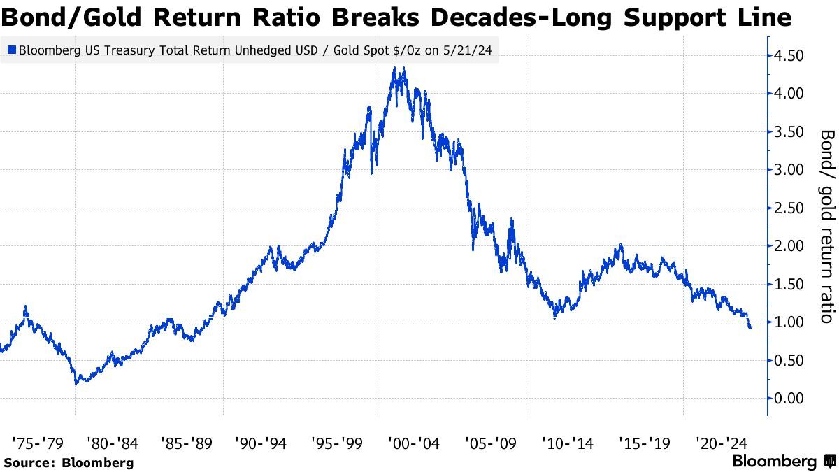 在过去半个世纪的大部分时间里,作为一种买入并持有的资产,美债的表现轻而易举地超过了黄金。但如今,美债作为终极避风港的地位正面临着迄今为止最大的挑战之一。