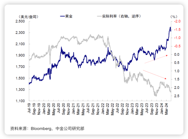 一般而言,由于黄金本身不会产生利息收益,因此实际利率可被视为持有黄金的机会成本。当实际利率下降时,相对于现金和债券等有息资产,黄金的吸引力会上升,反之亦然。