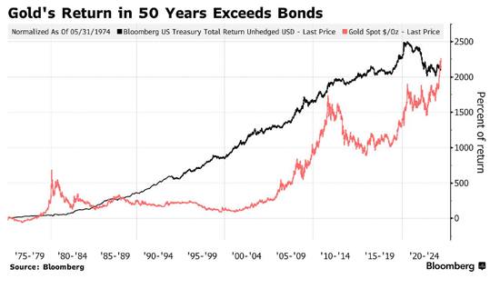 长达半世纪的“翻盘” 黄金回报率超越美债