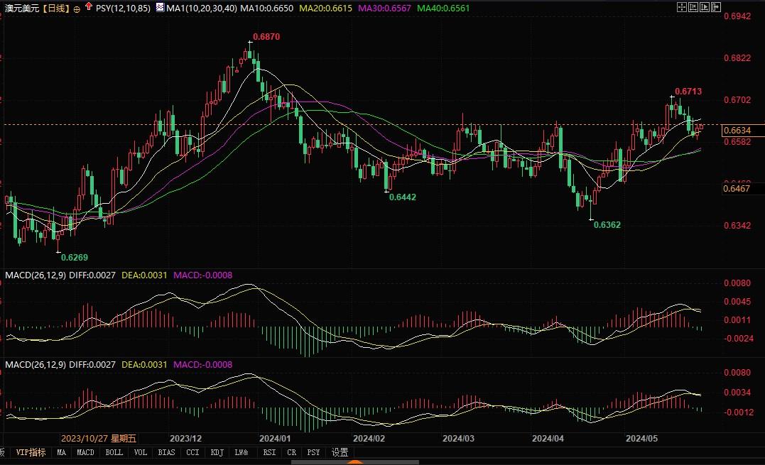 澳元兑美元日线图北京时间5月27日13:32,澳元兑美元报0.6633/34
