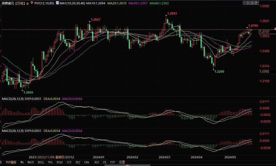 英镑兑美元日线图北京时间5月27日9:00,英镑兑美元报1.2738/39