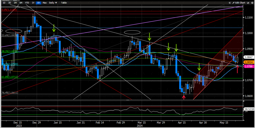 ► 本周市场重点关注美国4月PCE数据,如果数据可以确认4月CPI显示的通胀压力减弱势头而欧元区经济整体的反弹势头有所继续,那么市场对美联储降息的预期可能会再次反弹,而欧元则可能继续获得支撑。