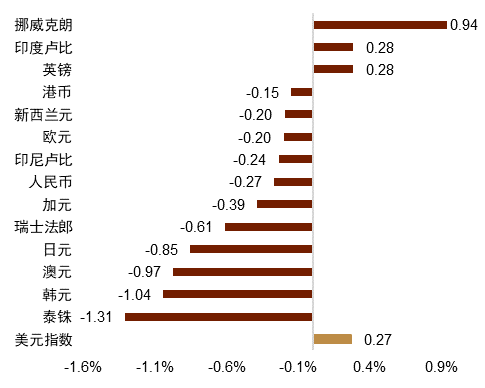 图表1:上周主要货币变化率(%)